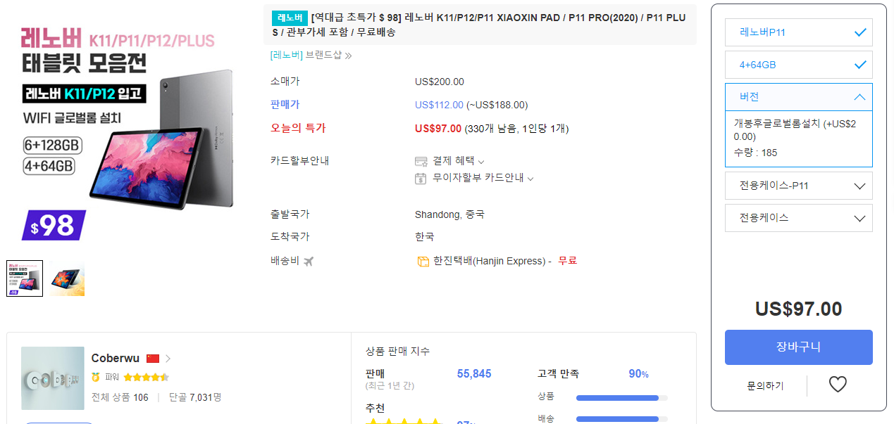레노버 P11을 결정한 가장 큰 이유다. 아이가 사용하기 때문에 막 사용하기에 가격부담이 적은 제품을 찾다보니 흐니들 가성비 태블릿이라고 하는 P11에 관심을 갖게 되었고 그래서 최종 선택하게 되었다.