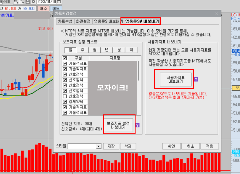 그래서 오늘은 HTS의 수식을 MTS로 가져오는 방법을 소개하려고 한다. 주식쟁이 특히 차트쟁이들은 이 기능을 마음껏 활용해서 모두 성투하는 주식쟁이가 됐으면 좋겠다.