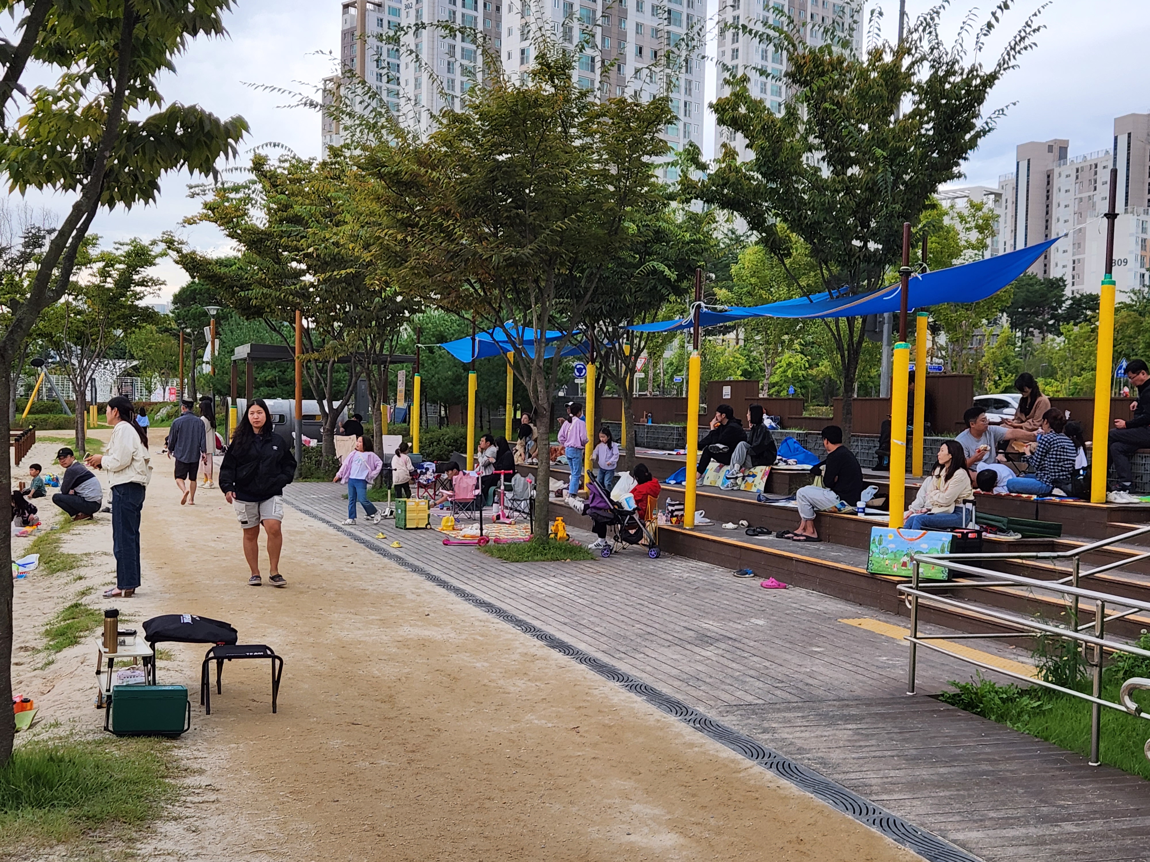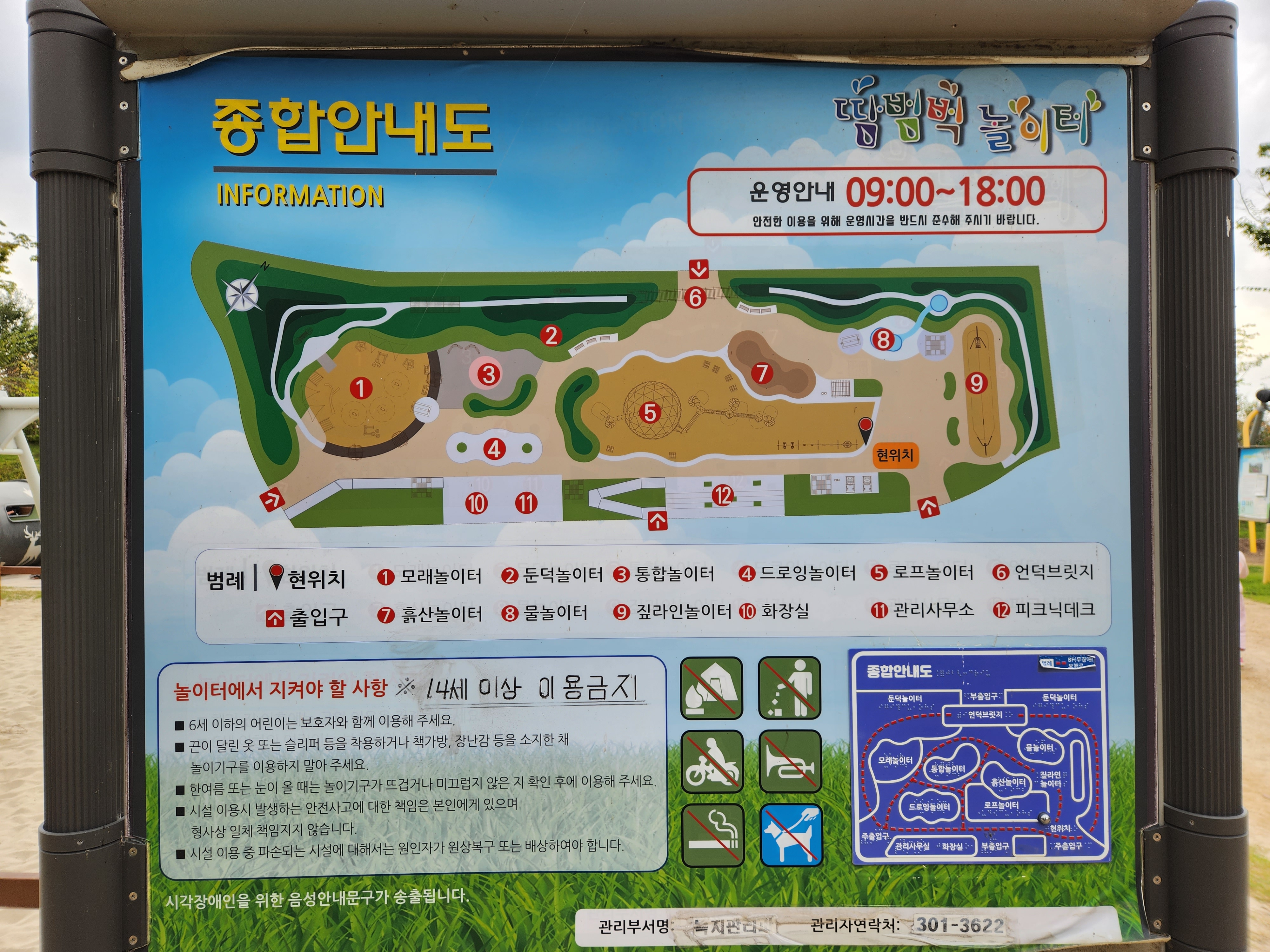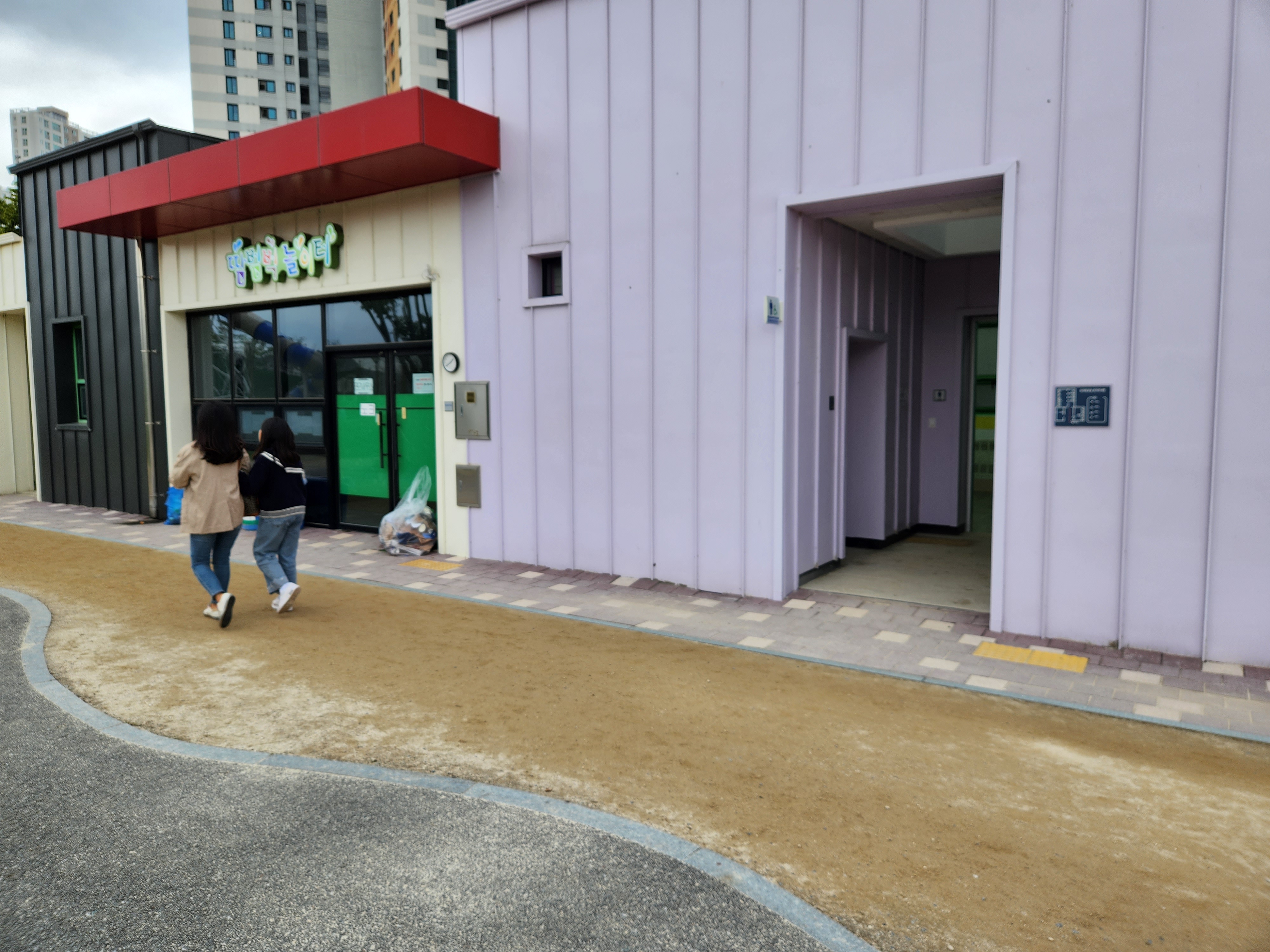 아이를 위한 놀이터, 운영시간이 18시까지로 되어있어 다들 18시 쯤에 갈 준비를 한다. 하지만 18시 이후에도 야외이기 때문에 놀수 있을것같다.