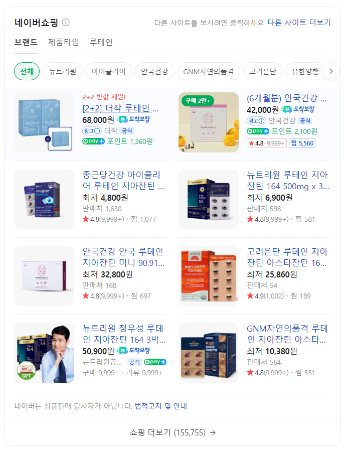 시중에는 많은 비율의 루테인지아잔틴이 있지만 권장량을 충족할 수 있는 5:1비율을 가장 추천한다.