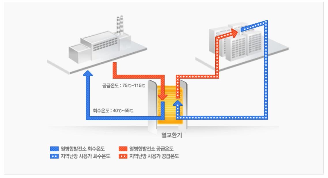 지역난방 = 집마다 보일러가 없음(온수를 공급받음)