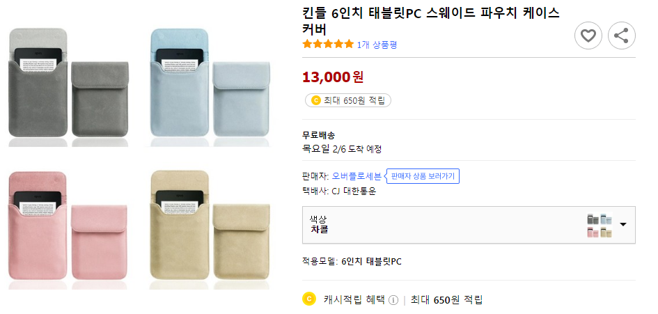 그렇게 고민한 끝에 책을 읽을때는 케이스 없는 리더기로만 읽고 읽지않을때는 리더기를 보호해줄 수 있는 파우치 형태의 케이스를 선택하게 되었다.