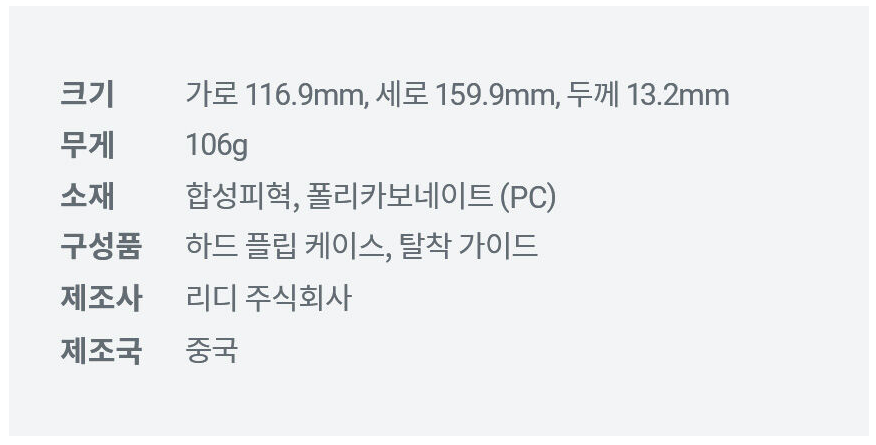 리디북스 정품 플립케이스의 무게는 약 110g이다. 단말기 무게가 약 250g인걸 고려했을때 리페삼과 플립케이스를 함께쓰면 거의 400g에 가까워진다.