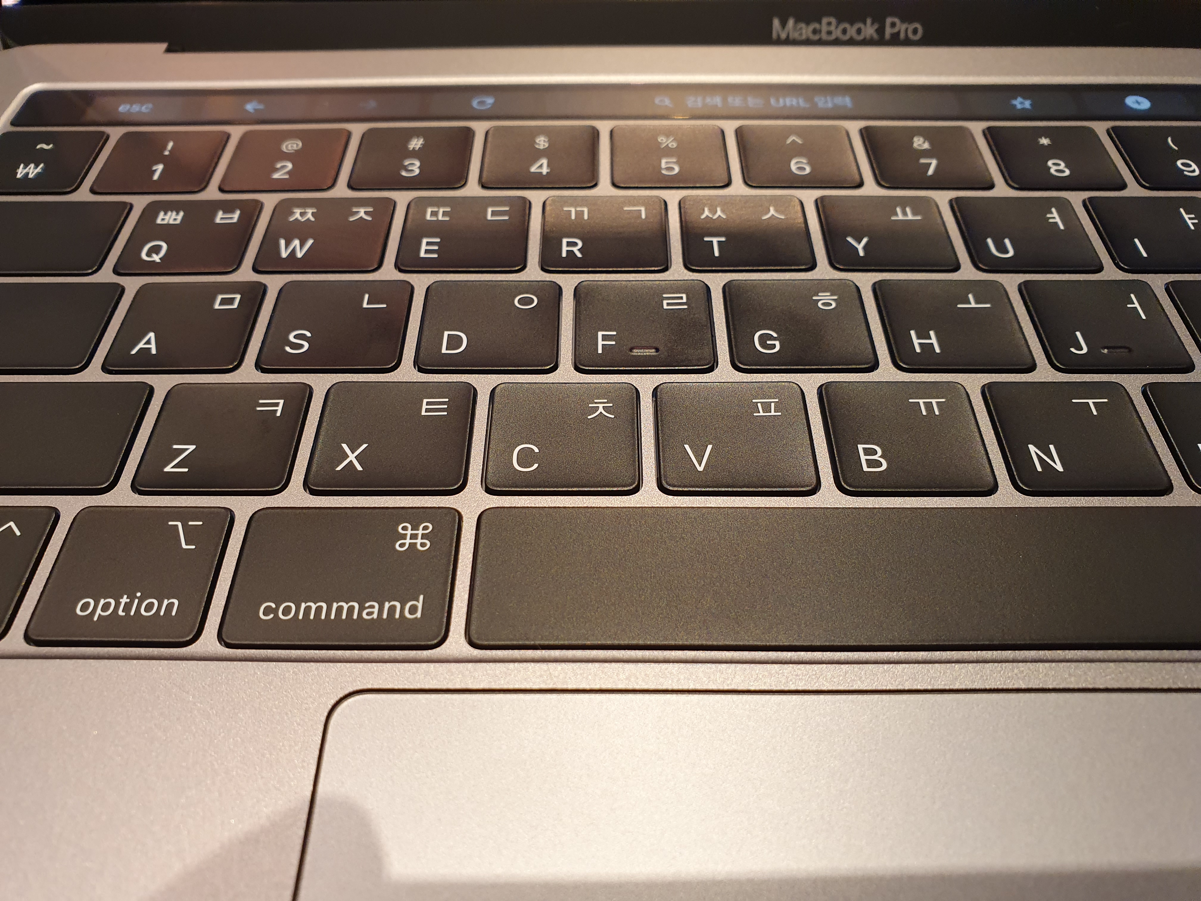 맥북프로13인치2019의 키보드는 나비식 키보드이다. 사실 나비식이니 가위식이니 하는 건 들어보긴 했지만 실제 사용해보지 않아서 뭐가 다른지 체감할 수는 없었다. 다만 맥북 키보드를 처음 접해본 입장에서 나는 나쁘지 않다. 누르는 느낌도 기계식 키보드를 따라가지는 못하지만 눌리는 감이 깔끔하고 생각보다 키감이 좋아서 금방 적응했다.