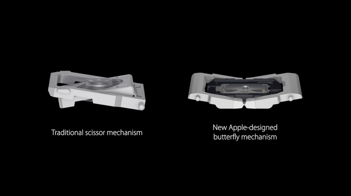 두께, 애플이 나비식 키보드를 채택한 이유이기도 한 이 두께는 단순히 키보드 두께뿐이 아니라 노트북 전체의 두께가 얇아지는 효과가 있다. 그러므로 지금 내가 쓰고 있는 프로라인도 가볍게 들고 다닐 수 있는 두께가 되었고 덕분에 고성능의 맥북을 어디서나 가지고 다닐 수 있게 되었다.