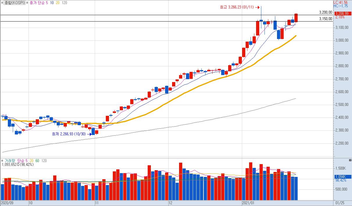 코스피, 코스닥이 끝모르고 오르고있다. 조정이 올것같으면 다시 금방회복하여 상승하고 있는 추세가 지속되고있다. 코스피는 어느덧 3000에 안착한 느낌이다.