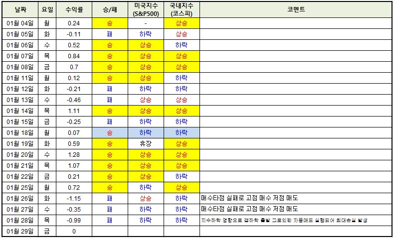 1월의 주요 리뷰 및 보완사항 : 확실한 종목에 대해 분할 매수로 접근하고 조급한 매매를 줄이자.
