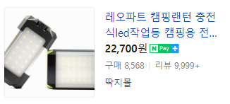 그렇게 찾고 선택하게된 레오파트 랜턴 크레모아 랜턴이랑 디자인과 성능이 비슷한데 가격은 훨씬 저렴했고 또 많은 사람들이 구매했기 때문에 나도 구매진행 결과적으로 사용하는데 매우 만족하고 잘 사용했다.