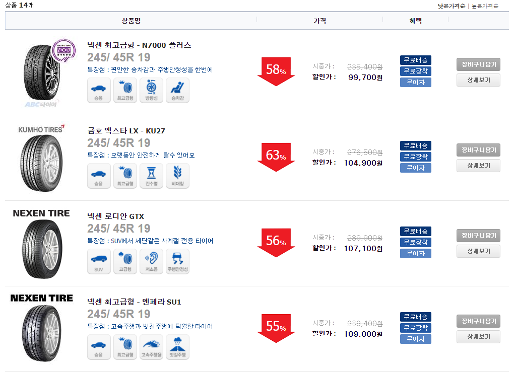 가격이 다양한 타이어 4. ABC 타이어에서 타이어 구입진행