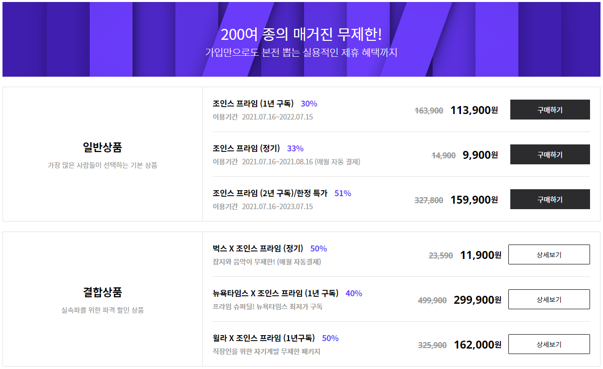 조인스 구독료 정보