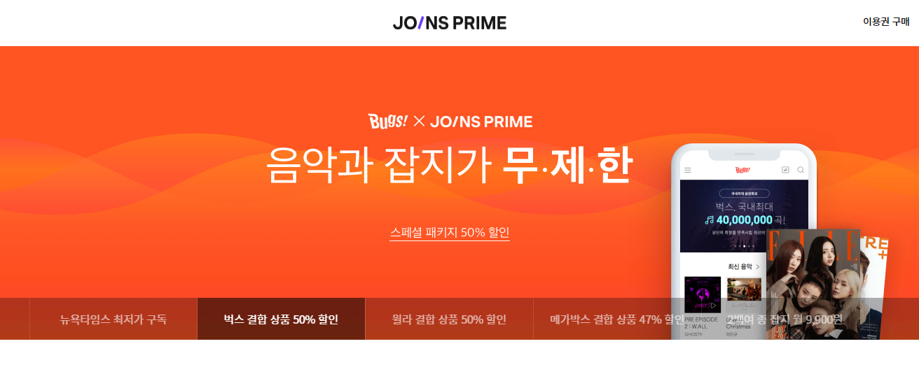 반면 조인스의 경우 신문구독+다양한 잡지의 구독료가 월 9900원이다. 중앙일보뿐만아니라 다양한 경제잡지와 생활잡지 그리고 만화까지 볼수있는데 저정도 구독료면 충분한 지불가능한 금액이였다.나같은 경우 조인스+벅스뮤직 통합 구독으로 월 11900원을 내고 있다. 2천원으로 벅스뮤직을 구독하는 느낌이라 매우 만족하면서 1년 넘게 구독중이다.