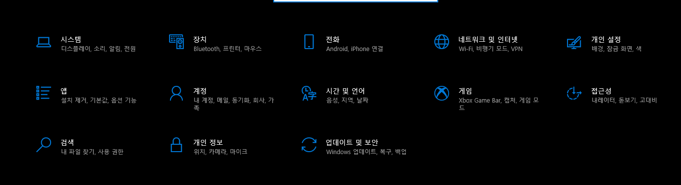 윈도우 키를 눌러 톱니바퀴를 클릭하여 설정창을 연다.